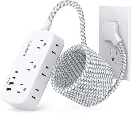 15FT Flat Extension Cord, Flat Plug Power Strip with USB C