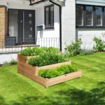 This is our wooden 3 tires elevated vegetable bed. This 4’ x 4’ garden bed is perfect for growing your plants and vegetables. With its step stair design you can place various sized plants inside each level. Each section is approximately 7 inches higher than the next, giving plants ample space between each other to grow efficiently. Solid wood construction make this vegetable can serve you for a long time. Use this bed on your patio, lawn, or garden. If you are plan to plant something, do not miss this planting box.