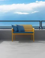The Net Bench is a comfortable, stylish two-seater outdoor bench with a radial pattern of square perforations. It has clean lines, a thin seamless profile and a wide range of matching cushions. Matte finish with non-slip feet. Cushion available to order. Made from Recyclable resin.